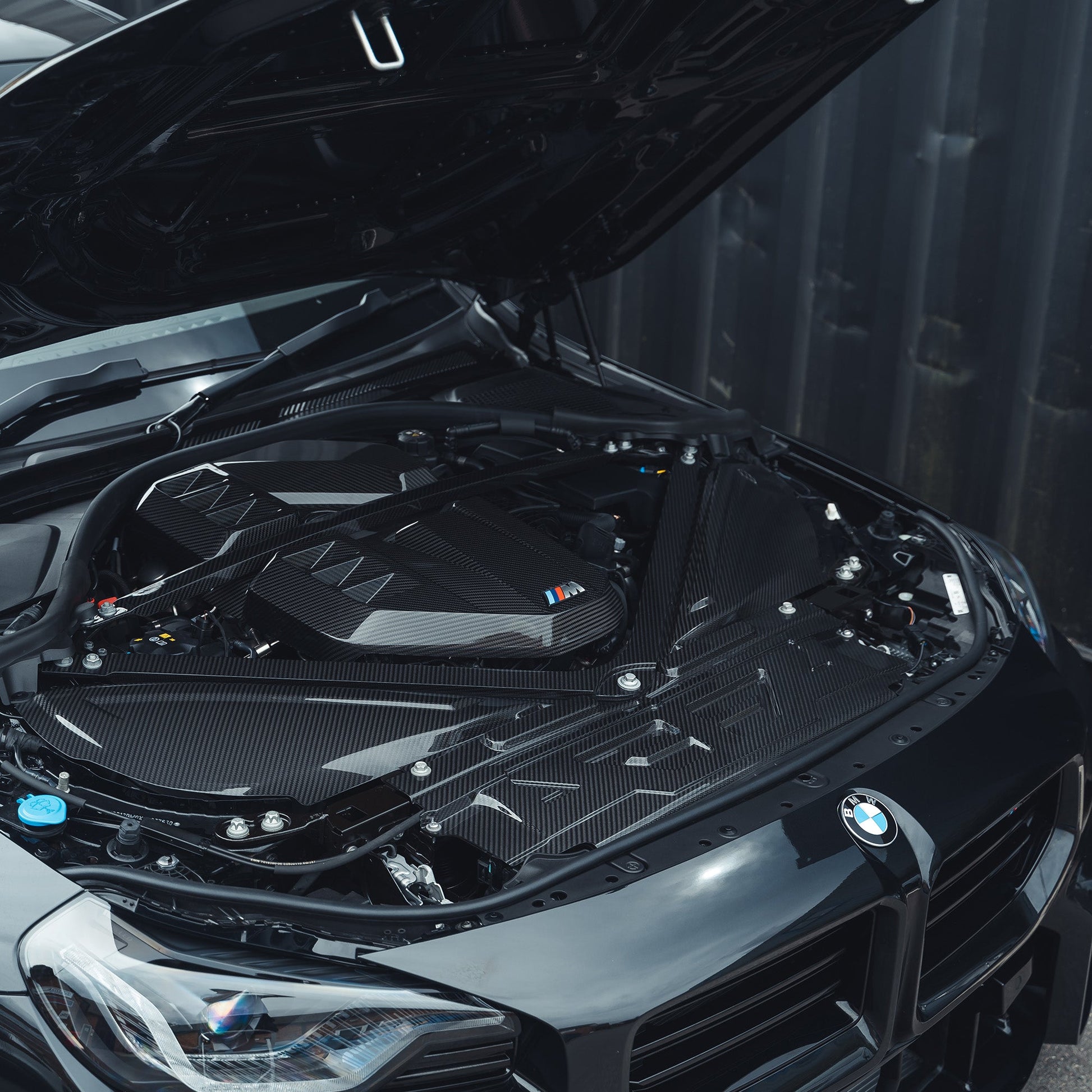 Barra de torretas de motor CT Carbon fabricado con fibra de carbono preimpregnada de alta calidad, diseñado para adaptarse a los nuevos BMW M2, M3 y M4.